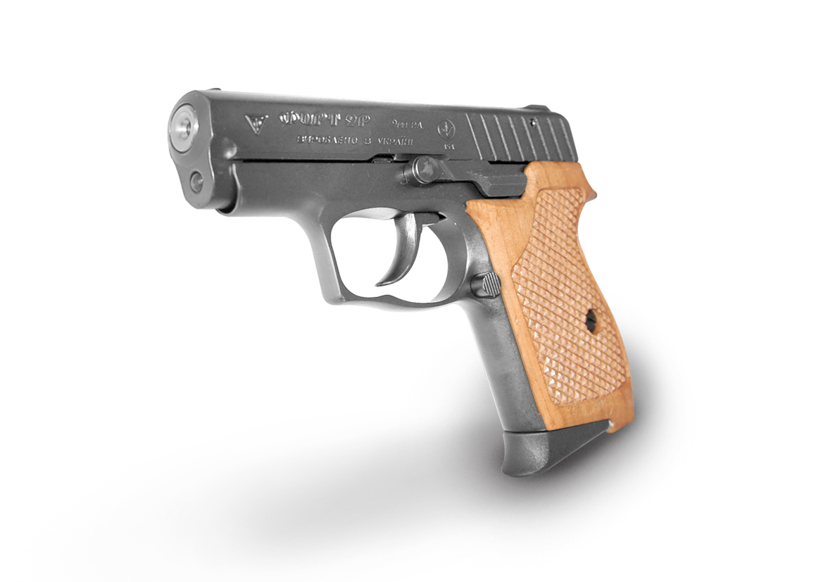 Traumatic pistol «Fort-9R» - modification of pistol «Fort-9» for cartridge with elastic bullet cal. 9 mm P.A. intended for civilians self-defense.
