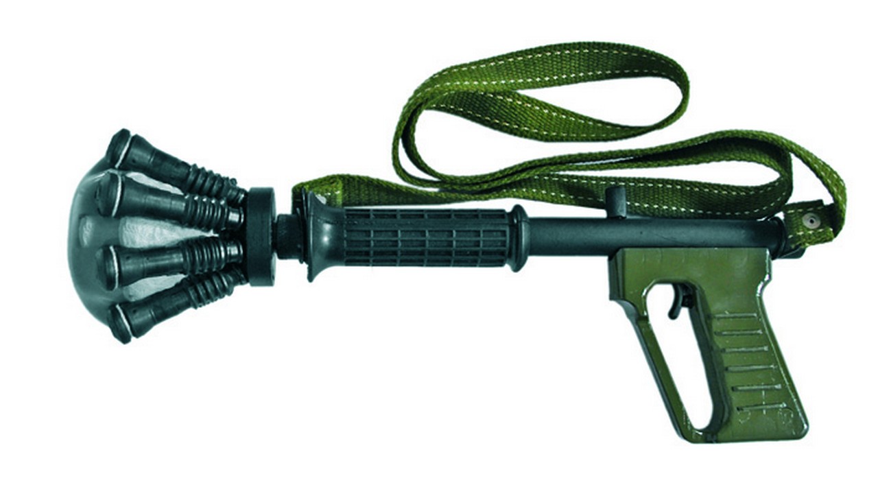 It is intended for seizure and temporarily retention of enemy manpower by means of it remote covering and restraining with high resistant catching-net. It is manufactured in form of assembled construction with pistol grip which contains percussion trigger. In front part of construction the net unit with mechanism of preliminary pressed net ejection is located. The net thrower is reloaded with replaceable cartridges containing net which facilitates the subsequent reloading. It is carried and serviced by one fighting man. It belongs to non-lethal weapon category.